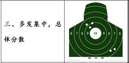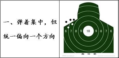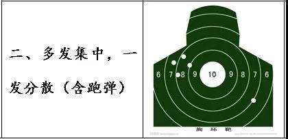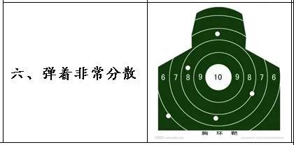 2.散布面积紧密,但有意外弹却明显偏离,因为射手扣动扳机瞬间有畏惧心理从而出现肌肉抽筋或耸肩等突然动作