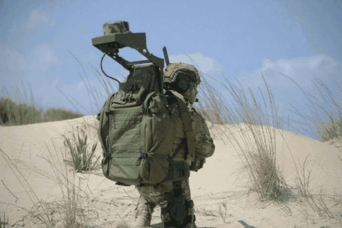 “BSAT-MP”的项目名称就是机动部队单兵背负式移动卫星通信系统,能够对战术级别的部(分)队提供作战卫星通信保障,利用先进的天线面板技术和控制跟踪机制,使地面部队拥有移动卫星通信能力。总体上讲,单兵背负式的“BSAT-MP”实现了模块化、小型化和轻量化,在通信能力上具备全双工、宽带卫星通信能力,在战场适应性上具备安装简单,功耗较低的特性。