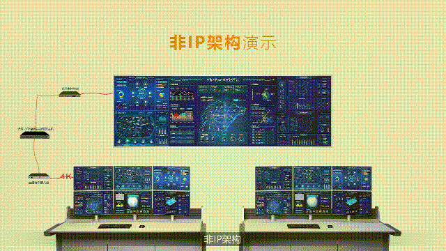 非IP光纤系统架构的信号传输,避免了IP交换机架构带来的信号卡顿问题,相比于第二代处理器60-100ms的信号延时,大屏幕光纤拼控平台能将信号延时控制在17ms以内,实现拼接大屏信号画面显示以及信号切换的高实时性。同时非IP光纤架构支持信号的无损传输,支持更高分辨率的信号画面,实现更好的还原度。