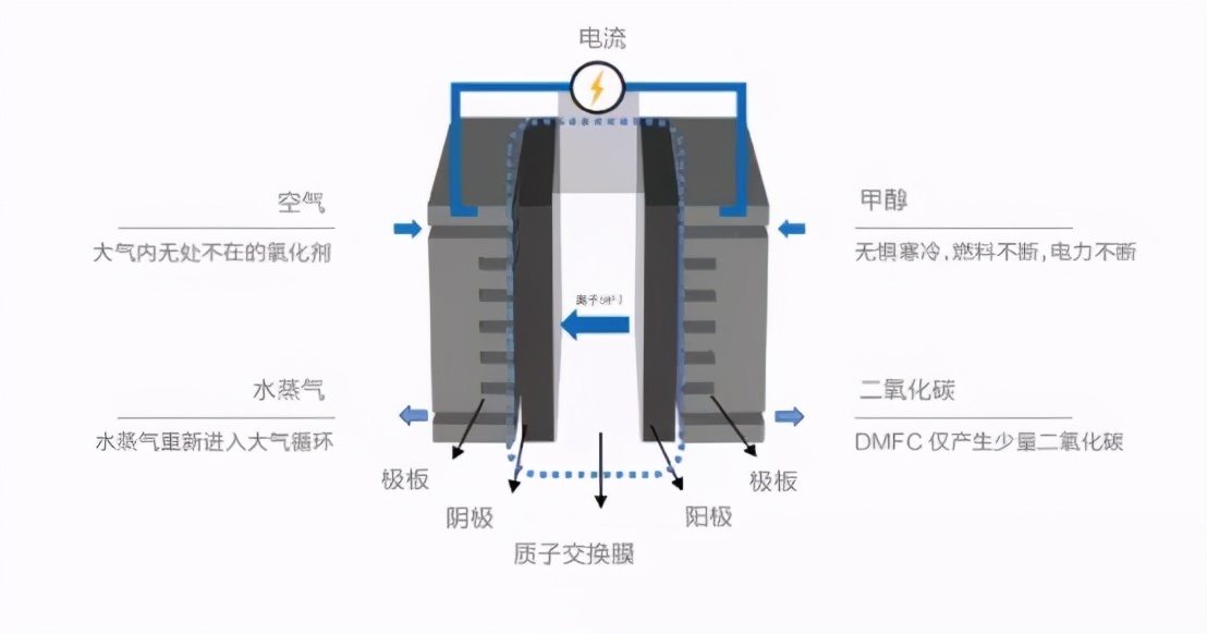 其反应方程式可简化为:CH3OH+O2=HzO+CO2+电能。