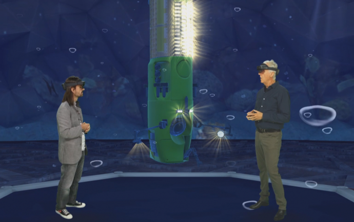 Kipman和卡梅隆两个看起来有血有肉的“真人”,以卡梅隆曾经乘坐深潜到马里亚纳海沟的“深海挑战者号”作为背景展开对话。