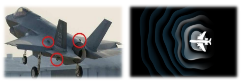 隐形战机:安装龙勃透镜反射器,隐形战机在训练时,实现对隐身机自身的雷达散射特征的保密,同时便于指挥中心评判训练效果;在非战斗转场飞行时,安装龙勃透镜散射,便于民航空管雷达发现,避免发生事故。美国猛禽、闪电、中国J20等先进隐形战机已加装,如图所示。本