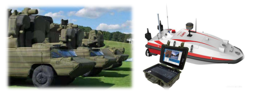 假目标:使用假目标隐藏真实战略战术意图,是战争中的重要谋略之一。图3是用龙勃透镜的散射特征模拟需要伪装的目标特征,欺骗和诱导敌方雷达,以保护真实目标,降低战场损失。比如:模拟成坦克、导弹发射车、潜艇、飞机、舰船等特定目标的雷达信号,如图所示。真假目标混合,结合龙勃透镜可以实现伪装,破解多模雷达、红外雷达等侦察。