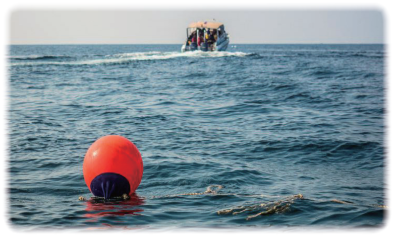 浮标等导航领域:传统浮标没有雷达反射功能或是发射小,不能及时被船只发现,靠视觉发现不能适应恶劣天气。选用龙勃透镜反射器制成的浮标,外形和传统浮标一样,但是具备雷达反射功能,超视距被雷达发现,适应夜间或阴雨等恶劣天气使用,降低灾难发生。如图所示。