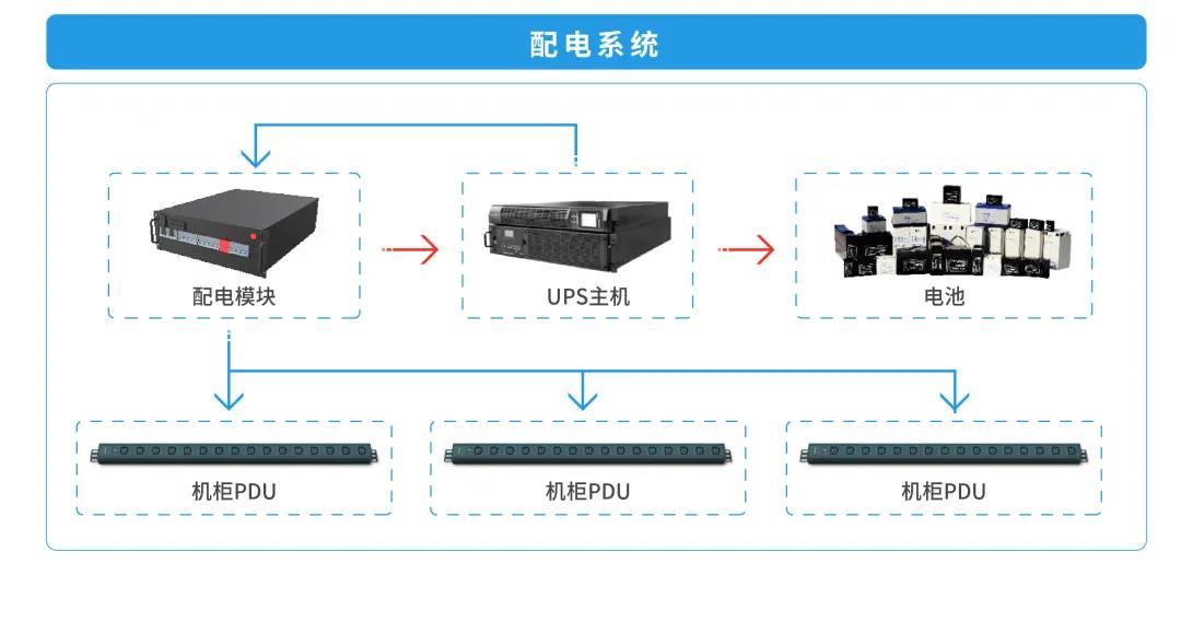 大华微模块机房配备智能高效UPS,提高电流稳定性,为各个PDU提供精准配电。断电时,蓄电池基于电流逆变,通过UPS为服务器提供后备电能,延长断电应急处理时间,为服务器以及数据提供高效保护。