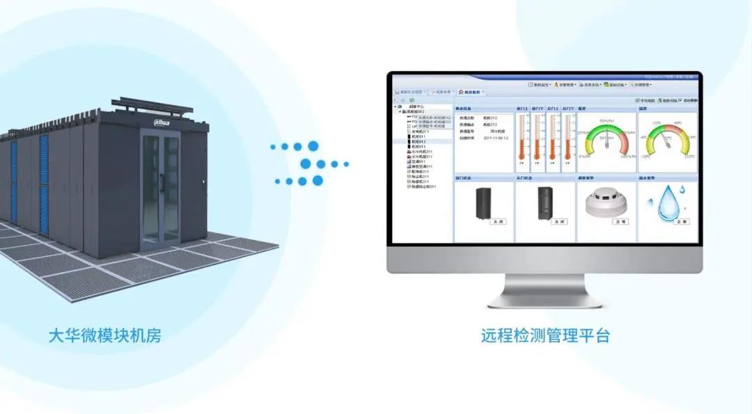 大华微模块机房内置动环监控主机,所有设备统一集中管理,各节点运行状态、市电状态、环境温度、PUE等实时监控,支持多种方式自动报警;远程管理功能支持远程监测、网络报警、日志管理以及多级用户权限管理等,实现全天候无人值守,为设备安全保驾护航。