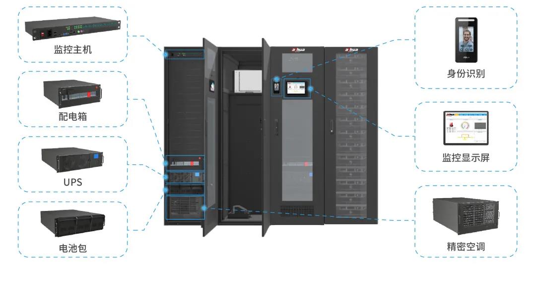 大华微模块机房采用模块化设计,高度集成电池、UPS、门禁系统、配电模块、动环监测、精密空调等模块,提高空间利用率,降低安装调式成本;即插即用,按需扩容,减少前期投入成本,柔性扩展机柜数量,灵活性高。