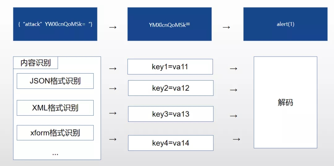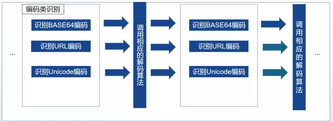1)基于编码特征的数据还原:通过依次循环识别编码类型,走到相应的解码过程。无论攻击者依据什么样的编码顺序进行编码,对于解码过程都不会有影响。