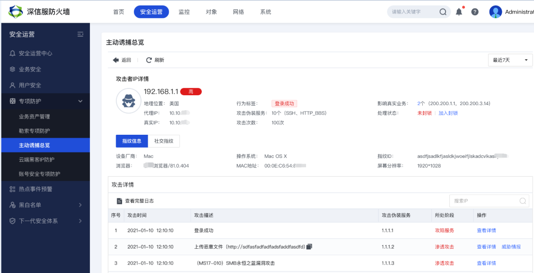 除了从HTTP解析链全过程加强防绕过能力,深信服下一代墙还对绕过攻击进行主动诱捕和深度溯源,即联动云蜜罐。