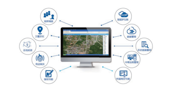 指挥调度;卫星定位;在线巡更;电话网关;鉴权功能数据管理;智能IP互联;多终端一体化管理;便捷智能的设备管理;实时海量历史数据查询。