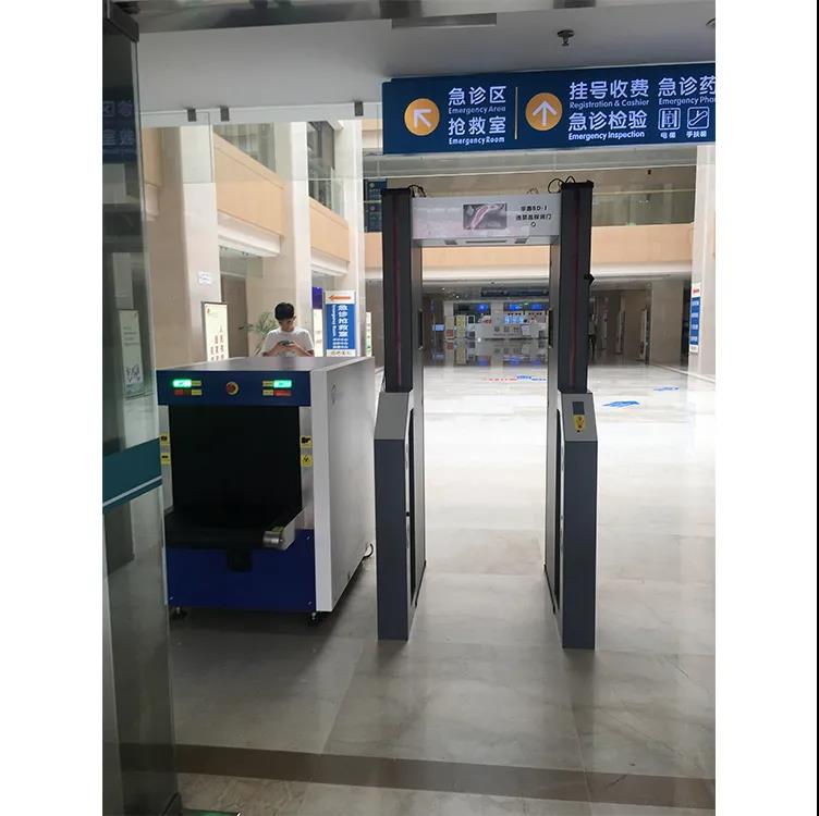 对于受检对象是人的话则采用人体智能安检门,主要是检查进入医院的人员身上有无携带危险品。
