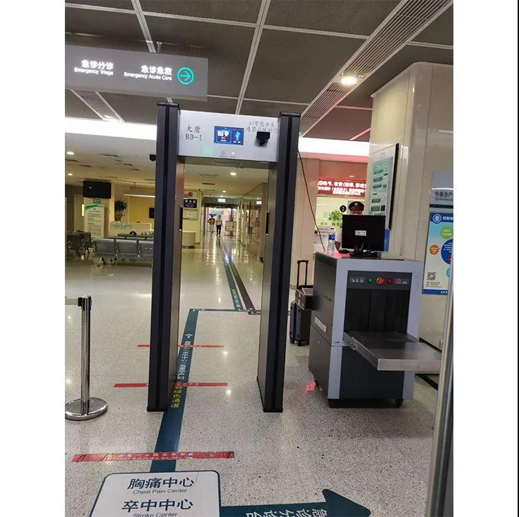 华盾科技结合市面上的情况自主研发的一款医院智能违禁品探测门,是一体化集成防爆安检、体温筛查、人员识别和云端管理等功能的智检系统,为医护人员保驾护航,是白衣天使的守护神。
