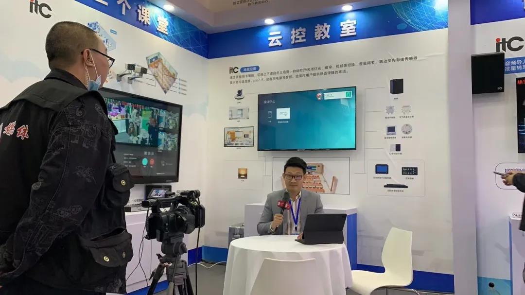itc携多功能报告厅礼堂解决方案、听力考试+听学、三个课堂、云控教室、语音转写、远程教学研讨等最新智慧校园产品及创新解决方案精彩亮相中国(山西)国际现代教育装备展览会,与媒体专家们共话教育发展。