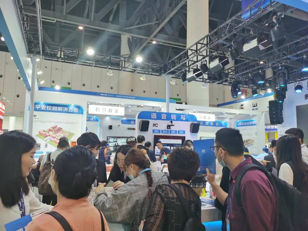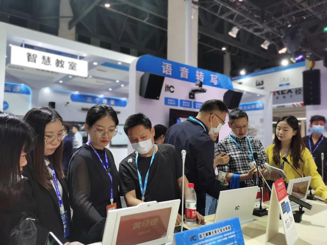 本次展会itc搭建了报告厅、智慧教室、三个课堂等场景功能体验区,展出的产品及解决方案有智慧校园整体解决方案、平安校园解决方案、云控教室、三个课堂、语音转写、远程教学研讨等,与观众分享最新智慧教育成果。