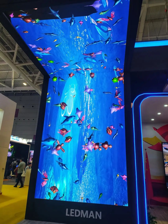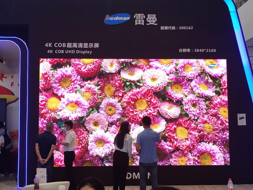 雷曼光电4K COB超高清显示屏也亮相本次展会,屏幕尺寸为220英寸,像素间距1.26mm,分辨率3840×2160。