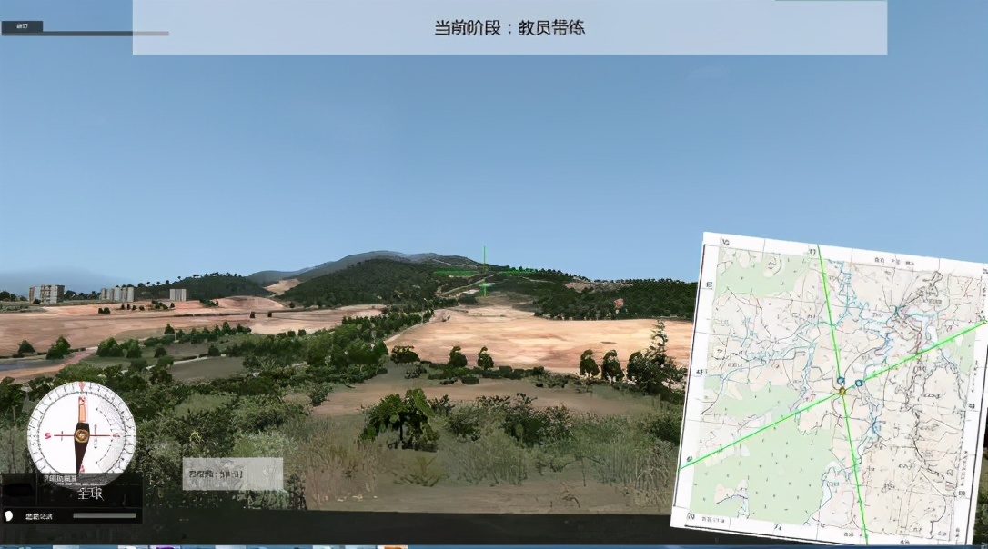 二是通过VR虚拟技术和人机交互,实现虚拟地图与现地地形的对照分析,完成不同虚拟地形条件下组织和实施“确定站立点、确定目标点、按图行进、按方位角行进、地形分析、目标判别”等专业技能训练。