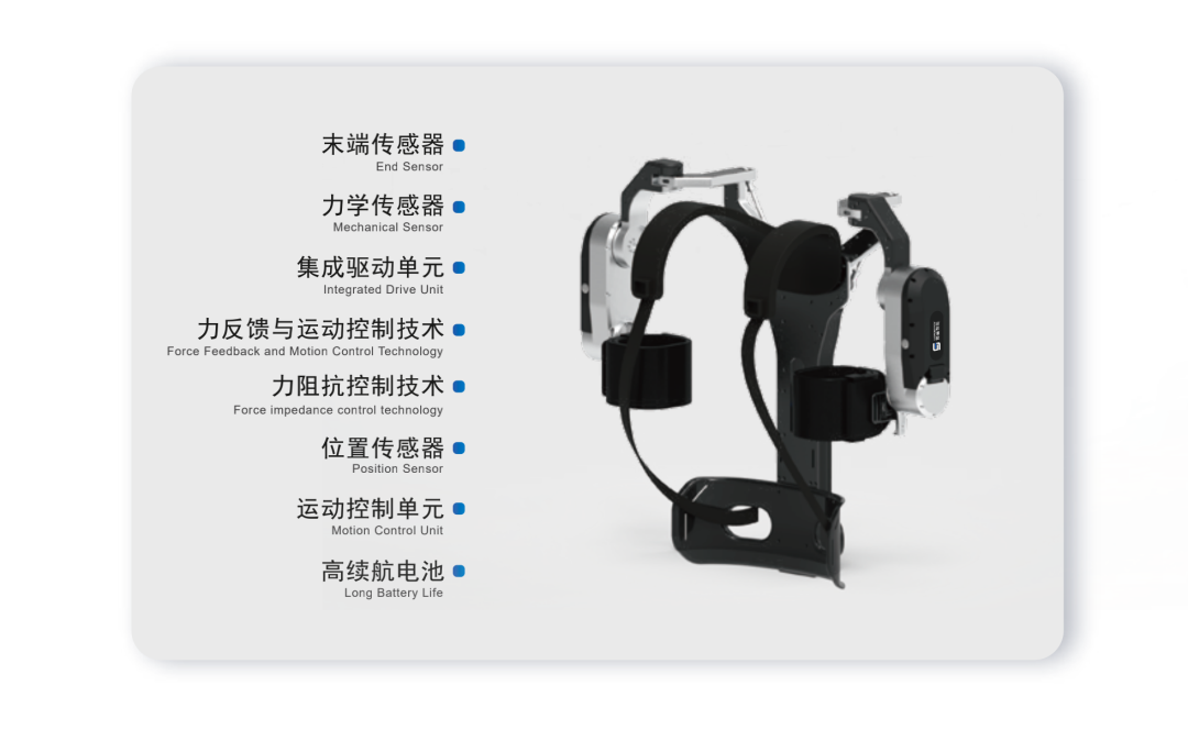 其中,MAPS-U™是一套具备4个自由度的上肢助力外骨骼机器人,为用户的手臂提供10kg-20kg助力,增强工人抬举持久力,减轻肩部疲劳,预防工伤。MAPS-U™完全采用电动驱动,并且可运行6-8个小时而不受限制。同时支持电池快拆更换满足整天工作时间。应用场景包括:制造业、物流、军工等领域。