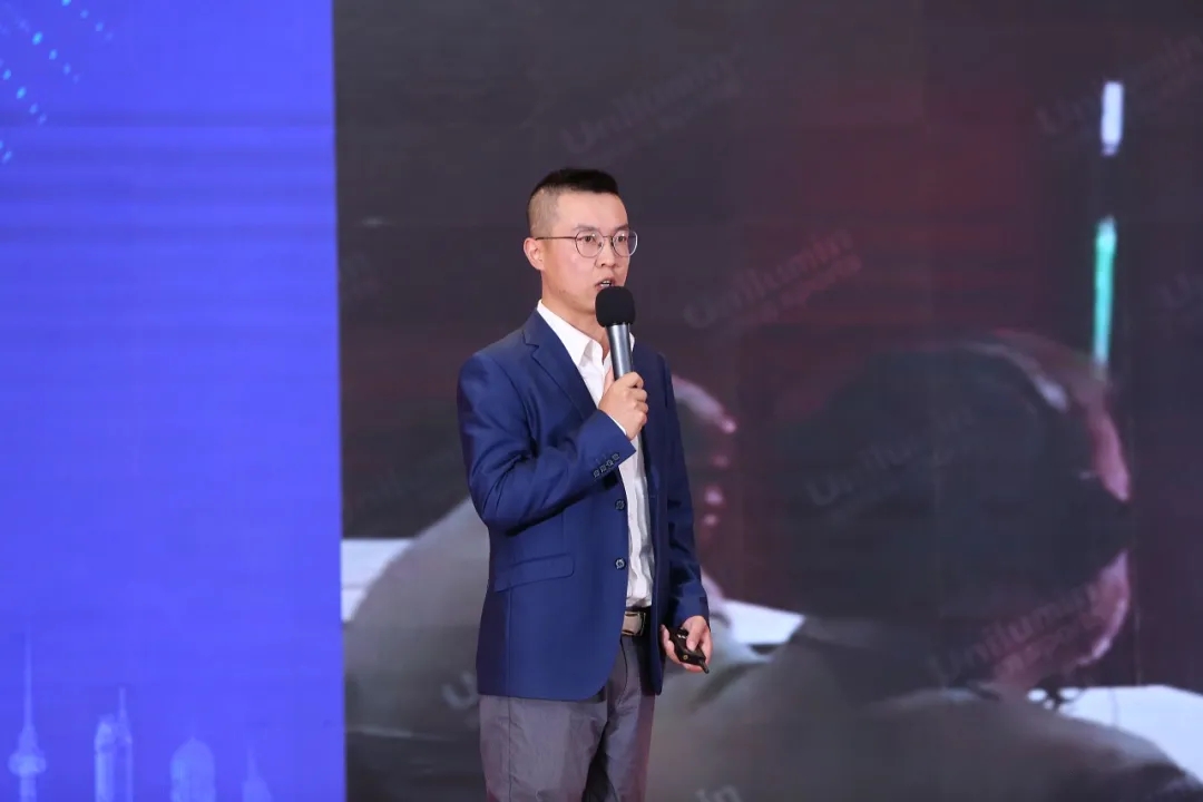 洲明集团国内营销中心总经理李志为大会致辞,并作“科技连接光彩世界,设计照明幸福生活”主题演讲。