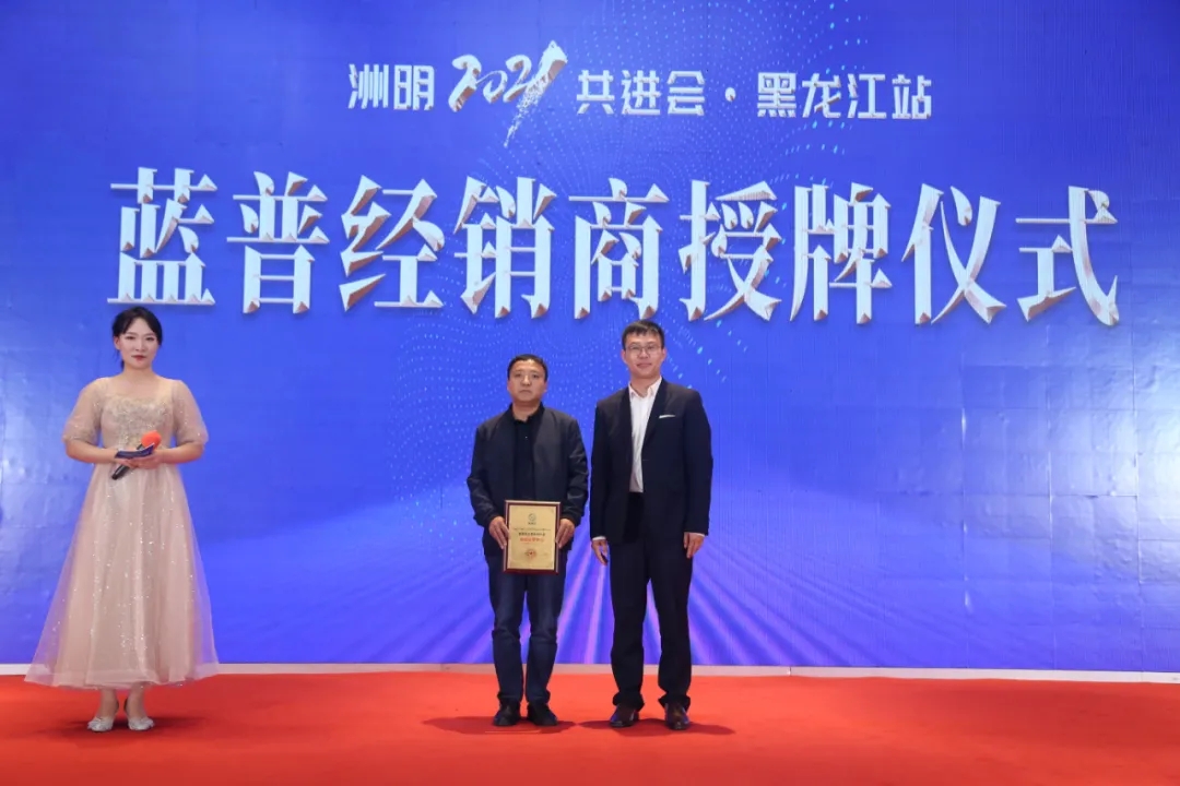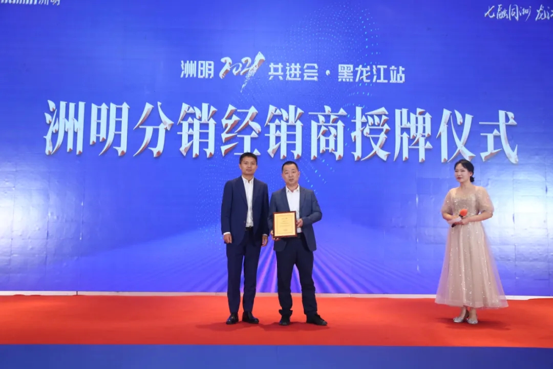 授牌仪式上,洲明集团相关领导为黑龙江区域洲明分销经销商、蓝普渠道经销商授牌。