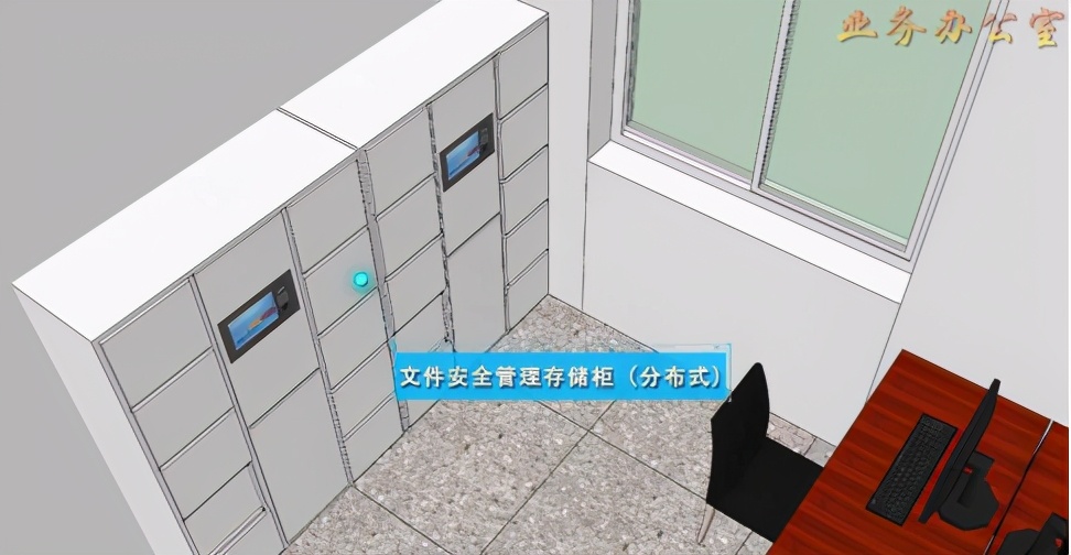 对重要涉密载体(物品)进行分布式存储,也就是在各自办公室独立安装,对重要载体存取过程、在位情况及动向进行智能化、自动化、不间断管理与监控,达到“集中管控”的效果和目的,“足不出户”地实现对自身管辖范围内的载体进行管控,方便办理人员实现科室载体管理的自主可控性,大大提高人员办公效率和载体安全管控水平。