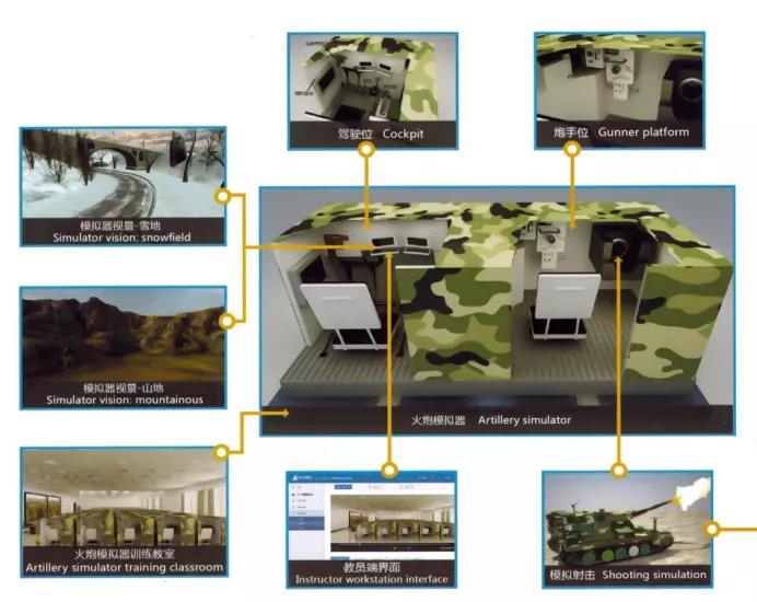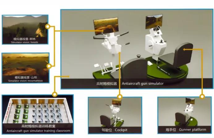 高射炮协同模拟训练仿真系统是半实物仿真系统,是一套逼真的能模拟各种环境的训练系统,本仿真系统包括驾驶位、炮手位、车长位,装配炮瞄雷达和射击指挥仪,系统通过将驾驶、通信、武器三大专业的模拟仿真训练利用计算机网络通讯技术进行无缝连接,使火炮各个角色能同时在相同的环境下完成协同训练。