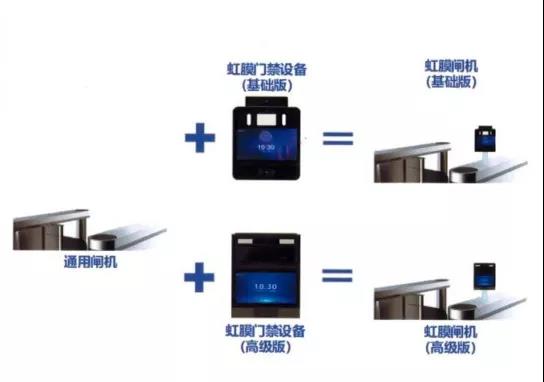 军营虹膜识别闸机是在普通闸机的基础上安装部署虹膜识别机头(即虹膜门禁设备),升级改造成为虹膜识别闸机,虹膜识别机头可以依据实际使用需求选择虹膜门禁设备(基础版)或者虹膜门禁设备(高级版)进行升级改造。