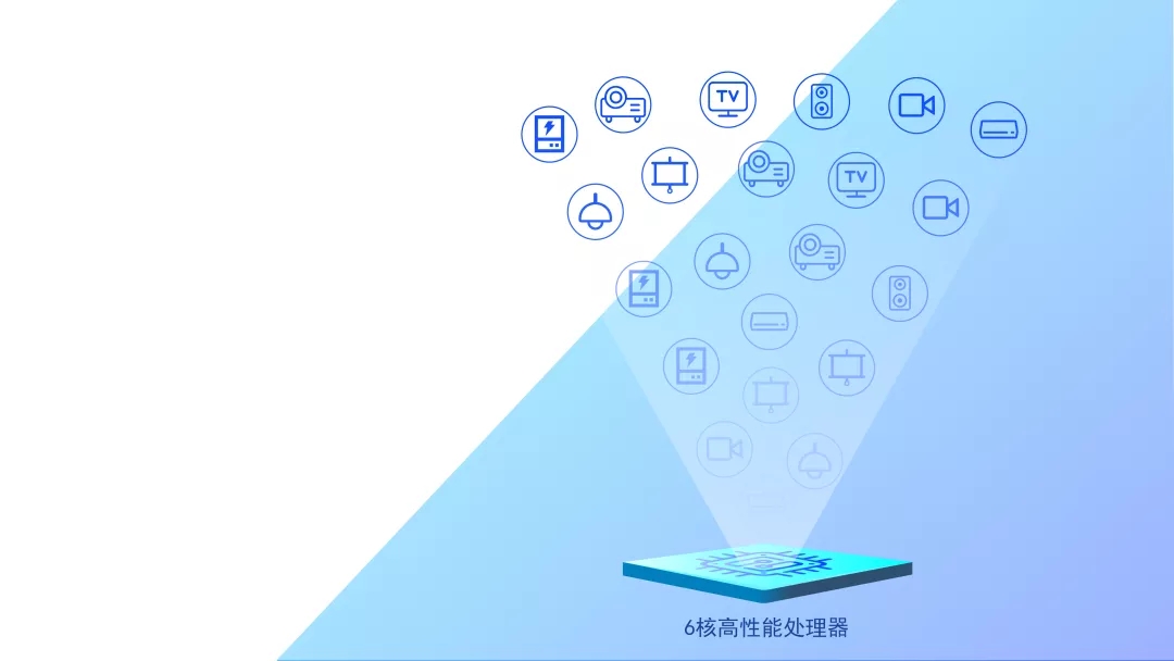 处理核心采用 6 核 64 位1.8GHz 主频高性能处理器,超高并发性能不仅满足了复杂中控指令的批量处理,同时为音视频可视化和多功能扩展提供了有力保障。