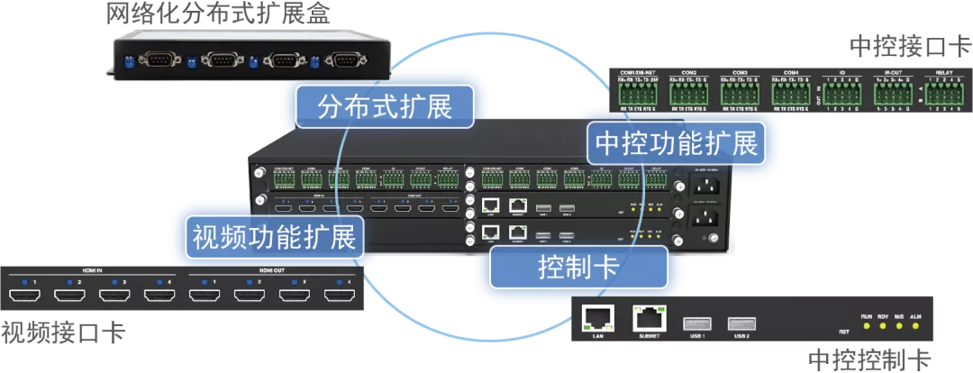 插卡式设计扩展灵活,支持串口卡、视频卡等功能卡扩展,为了避免机箱规模影响后期扩展,支持采用网络化的分布式扩展器进行网络串口扩展,不受机箱卡槽数量的限制,基于网络在空间和距离的扩展更加灵活。
