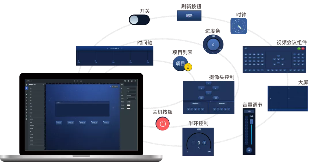 中控主机内置小鸟科技自主研发的X-Designer玄武设计器,可根据现场功能需求及用户操作习惯,为用户提供个性化的操控界面,无需复杂繁琐的编程,快速生成人机交互界面,让用户在专属界面上自主灵活的进行操控。