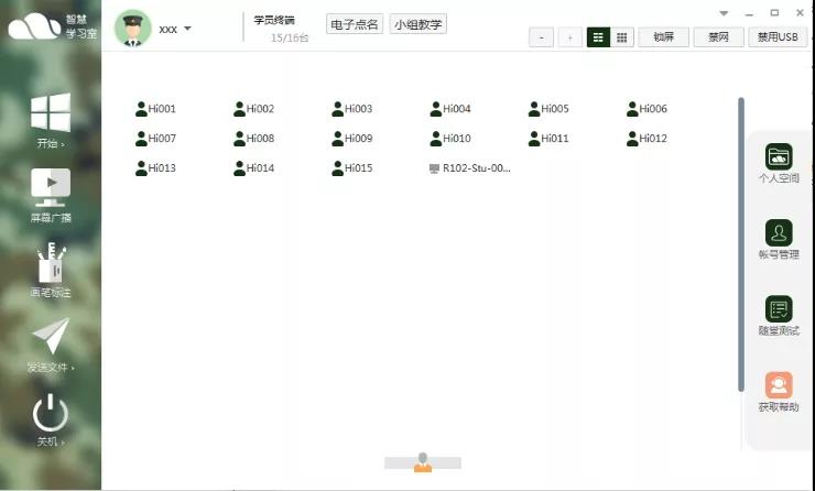 4)教学管理软件:业界主流的云桌面厂家都能提供自研的教学管理软件,与云桌面硬件配合实现在线学习室的屏幕广播、文件收发、随堂测试等。另外主流云桌面厂商由于具有较强的研发实力,其自研的软件很难被破解,保障了统一教学时的管控能力和安全性。