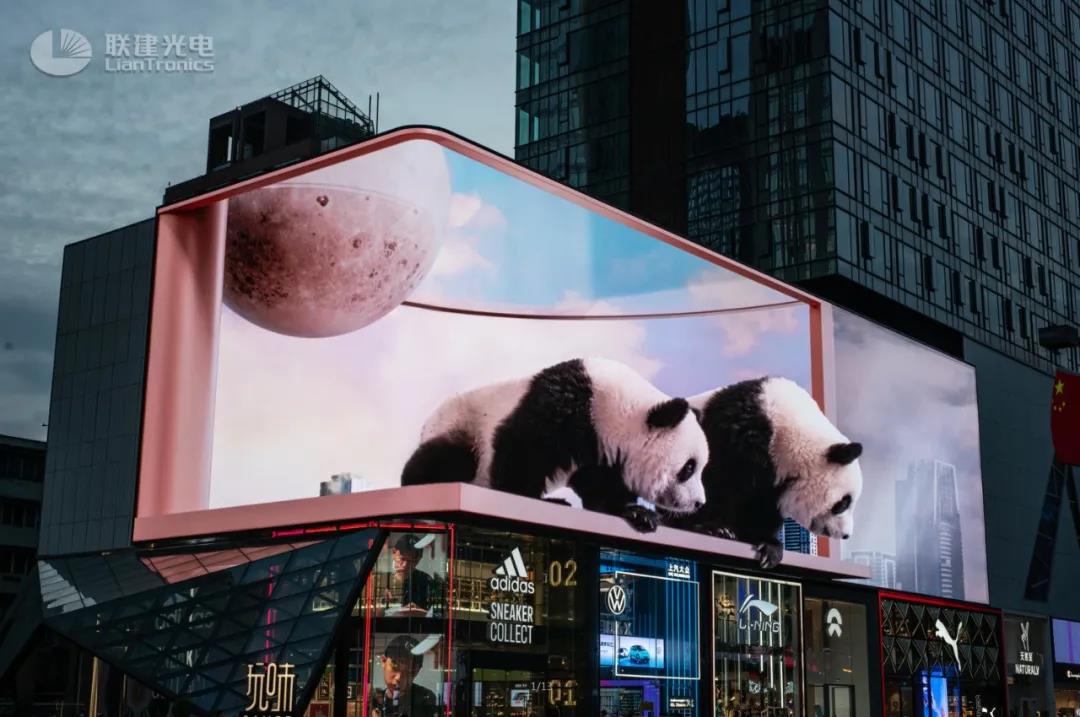 这款由联建光电打造裸眼3D巨幕,被称之为“重庆之光”,地处重庆机场商圈中心位置美联广场,是飞向世界的必经之路,单日人流超30万人次,较传统户外广告“吸睛”力三倍以上,成为最具影响力的文化传播窗口之一。