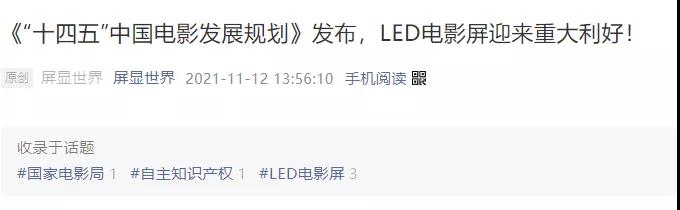 近日,国家电影局官网发布了《“十四五”中国电影发展规划》(简称《发展规划》)的通知。文中指出,重点研究拥有自主知识产权的视音频编解码、数字内容加解密、数字证书认证、数字水印以及影院LED屏等技术与设备,抢占技术制高点,打破国外技术垄断,努力提高国际标准参与和引导能力。消息一出,对于专注LED电影屏以及虚拟拍摄技术的企业是一大利好。
