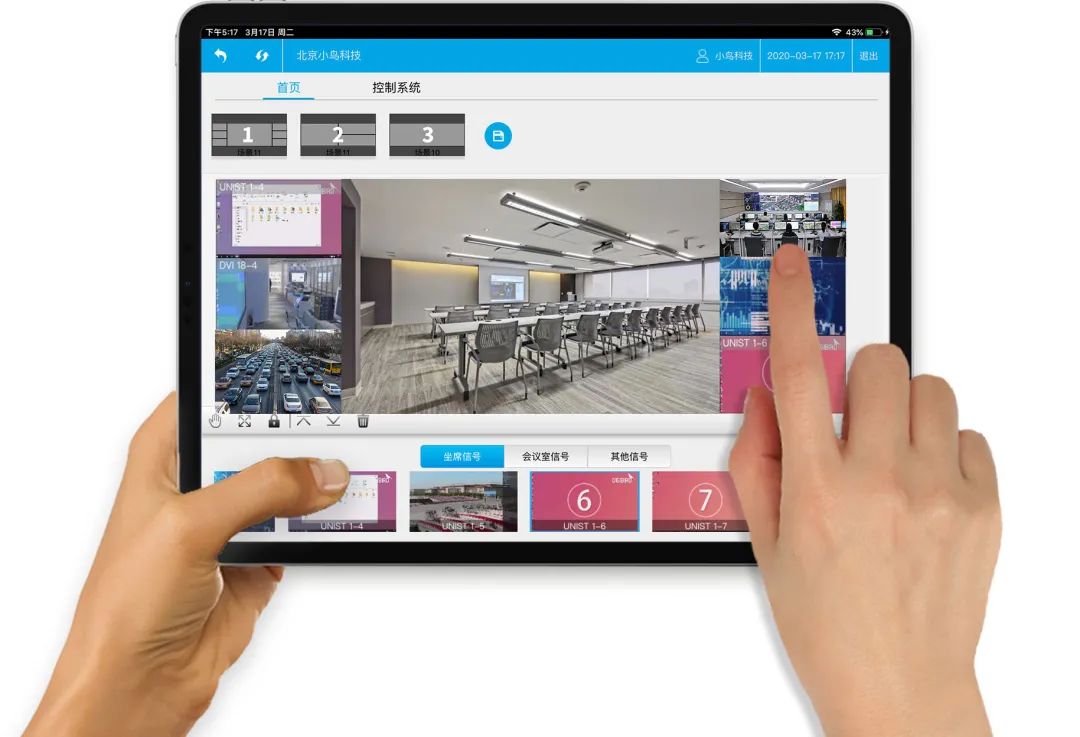 小鸟青鸾分布式可视化软件平台横向打通各子系统的协作通道,对大屏显示控制系统、视频处理系统、音频处理系统、中央控制系统、媒体录播系统等进行统一管理,实现互联互控。使用者无须对应接口编号查找视频源,通过PAD上显示的预览画面即可锁定相应输入源,实现快速切换,防止误操作。支持在同一平台下,多个人员分别操作不同应用,完成整体协作,所有操作完全同步显示。