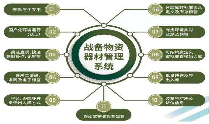 该系统是基于方智特智慧营区管理平台、融入战备物资器材管理模块后形成的可独立部署运行的战备物资器材管理系统。系统由管理平台、库房终端、移动终端等软件系统及配套硬件组成,实现从物资来源(采购、请领、配发、转入.....)到物资使用(出入库、调拨、损耗......),再到物资报废等全过程管理,系统管理平台可部署运行在国产服务器及麒麟等国产操作系统上。