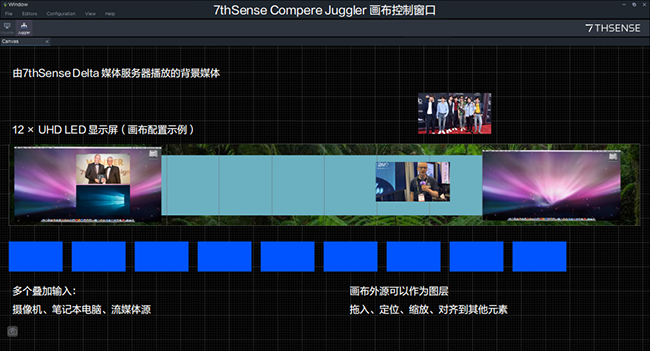 Juggler是7thSense高度模块化的基于硬件的像素处理器,是超大视频墙(LED视频墙、CLED、多通道投影融合)、复杂多显示器(LCD、OLED)和超高分辨率画布的理想选择,具有可扩展性,可接受无限信号源。