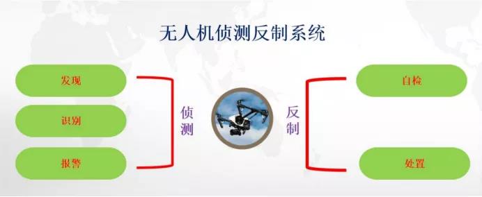 (四)无人机反制侦测系统同时可以联动除集成一体设备外的其他无人机反制设备,例如:车载无人机反制设备、便携式无人机反制设备等,一旦发现周边有无人机出现,立即可以搜索并告知无人机附近执勤人员以及无人机反制设备,实现多层防护、精准防御。