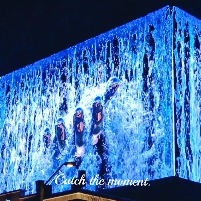 每当夜幕降临,影院门市前总不缺停步打卡的行人,他们无一不被这块裸眼3D巨屏所吸引。