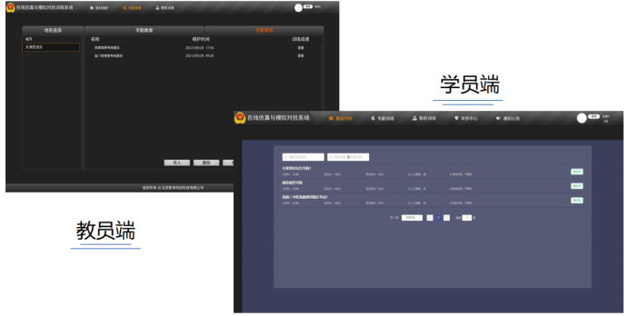 某司研发的在线仿真与模拟对抗训练系统是一款专业性的针对武警部队日常训练特点,打通“教”、“学”、“练”、“考”、“评”五大环节,让武警部门聚焦勤务、提升履职能力的在岗执勤训练系统。