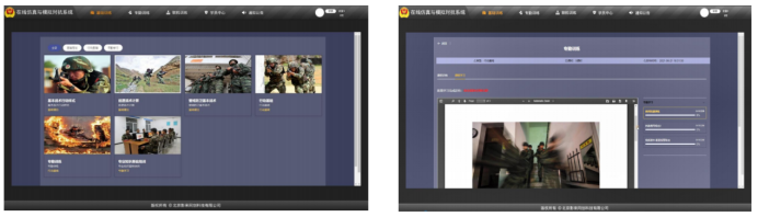 系统分三大模块:军事理论在线学习、专勤专训、方案演练(红蓝对抗)三大模块。