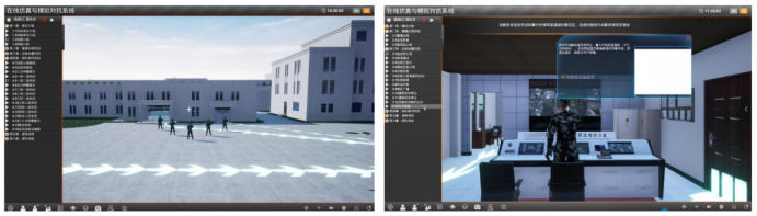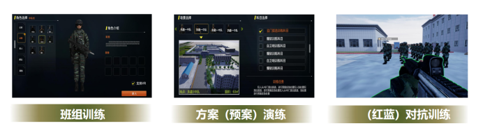 提供三维仿真场景下多人多角色协同与对抗训练,对方案进行演练评估;