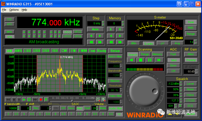 PFSL-G3接收机控制软件包含许多高级功能,如:射频和音频频谱分析、扫描、多种调谐选项、存储器和丰富的在线帮助工具。