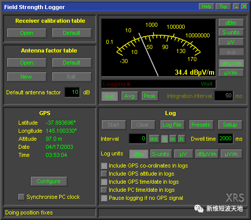 系统自带GPS接收机,可显示和存储测量信号的地理坐标,记录的数据包括时间、日期、经纬度和海拔高度。信号电平测量单位可以选择μV、dBm或S单位,场强显示可以用μV/m或dBμV/m,还可以按用户定义的间隔显示峰值、平均值或者瞬时值。日志记录内容的字段结构灵活,用户可以自定义,使数据便于导入到流行的GIS包中做进一步处理。还可指定各个频率下校准天线的天线系数,以便实现场强的精密测量。
