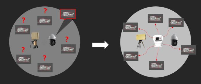 当雷达扫描到多个目标后,PTZ方案同一时间只能追踪一个目标,而全景周扫方案可以同时监视跟踪多个目标,保证目标信息不丢失。