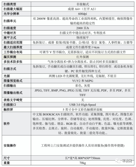 手动和自动扫描一体机(手动和自动翻页两种模式)方便快捷, 广泛适用扫描成册文档。非接触式扫描,顶置式高清、高寿命、双工业面阵相机配置。