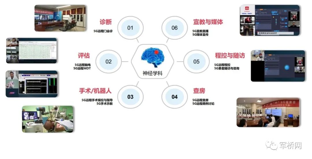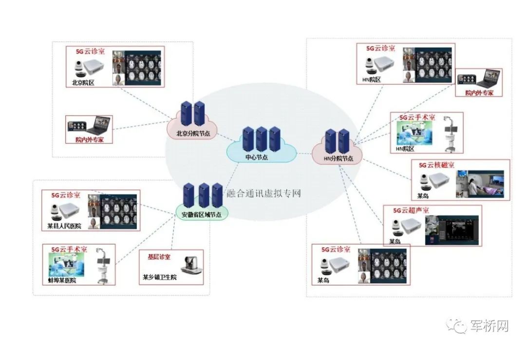 基于5G云技术,实现诊室、影像室、超声室、手术室、病房、康复室、病理室、云内镜、急救、检修、教室、融合指挥调度/影像质控中心实现十二个医疗场景线上远程应用。