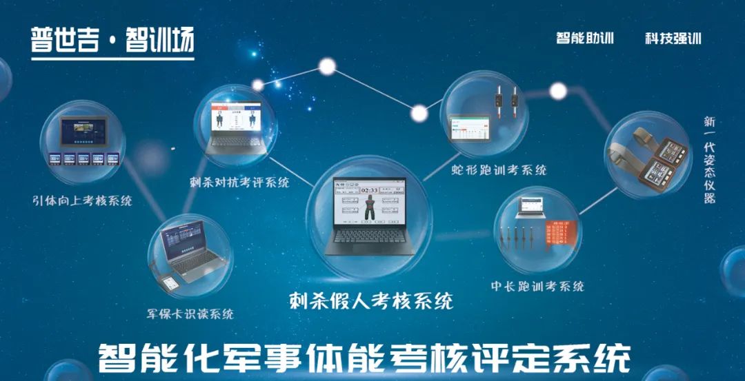普世吉智训场,主要以一件贯穿全科目训考的贴身姿态仪和军人保障卡识读器两个核心技术单元作支撑,具有独家的技术优势。