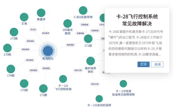 为满足军事人员态势感知和指挥决策等知识需求,提升综合信息服务的反应速度和决策水平,将信息优势转化为知识优势、决策优势和行动优势,柯基数据研发了可视化军事知识图谱系统。