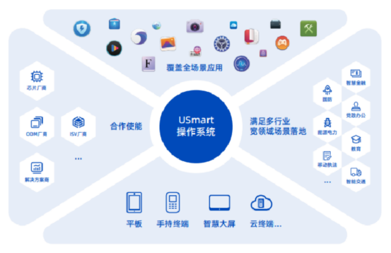 USmart支持ARM及X86芯片架构,支持多种应用生态,与国内芯片、终端、独立软件开发商等厂商紧密合作,为用户提供自主、安全、可靠、易用的智能终端操作系统。