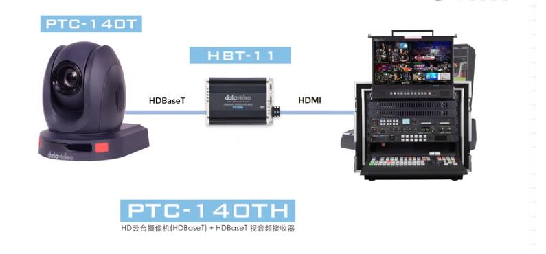 使用的是三台Datavideo洋铭HDBaseT高清云台摄像机PTC-140T,每台仅需一根CAT-6网线即可传输视频信号、控制信号以及摄像机供电。在会议现场无需为每台摄像机安排电源插座,也不用连接多条线缆,环境简洁且安装简易。这款摄像机还能作为会议直播摄像机,具有推流直播功能,可作为视频会议的安全备用信号。