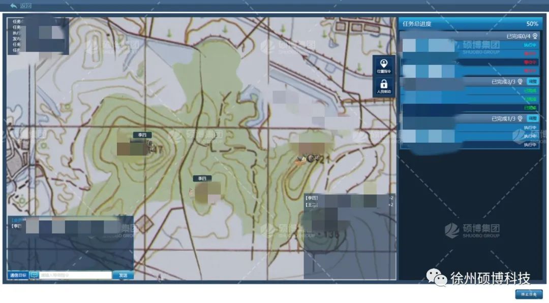 围绕大力推进科技练兵的宗旨,徐州硕博电子科技有限公司根据长期的军用装备模拟器数据积累研发而成的某作训导控系统,采用当前先进的人工智能技术、虚拟仿真技术,结合大数据分析技术、虚兵系统,对作战训练进行想定设置、综合推演、达到部队演练信息采集与验证的目的。“导调控制系统”由导调控制软件、便捷式导控终端、中心计算机与服务器等硬件组成。主要实现演习前训练计划的配置,演习中的作战态势显示、过程导调干预、实时评判裁决,演习后演练过程回放、评估分析等功能。